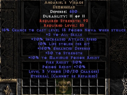Andariel's Visage - Ethereal - 10% LL/30 Str/150% ED - PerfectLieferzeit: 1-12 Stunden |