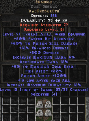 Bramble Dusk Shroud 15%ed +50% PSD & 21 Thorns - Perfect
