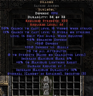 Dragon Archon Plate - Ethereal - 5 All Stats - PerfectDélai de livraison 1-12 Hours |