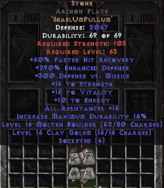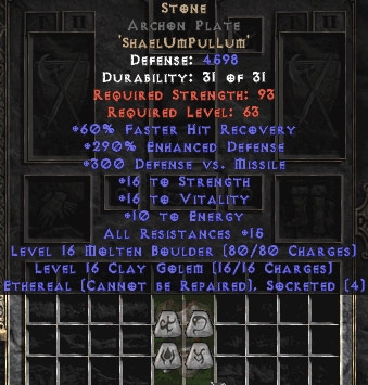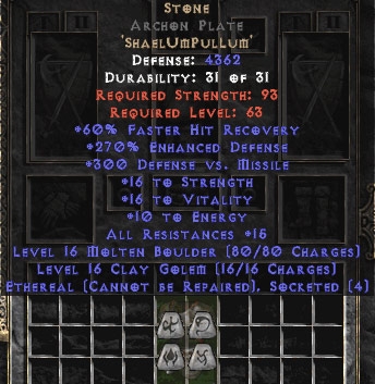 Stone Archon Plate - Eth Bugged - 290% - Perfect |