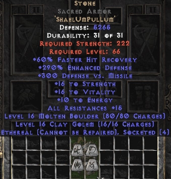 Stone Sacred Armor - Eth Bugged - 290% - Perfect |