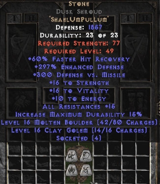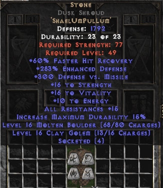 Stone Dusk Shroud - 305% Edef - Perfect |