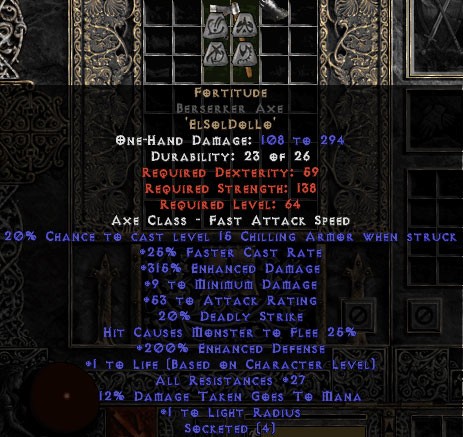 Diablo 2 Fortitude Berserker Axe - 25-29 Res & 1.5 Life kaufen