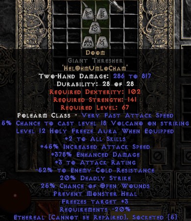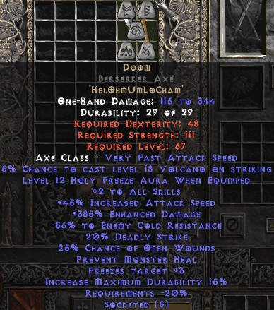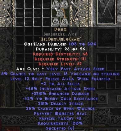 Doom Berserker Axe - 385% ED & 60% ECR - Perfect
