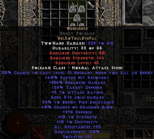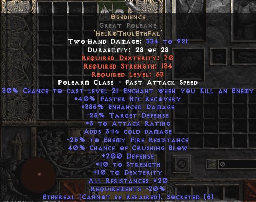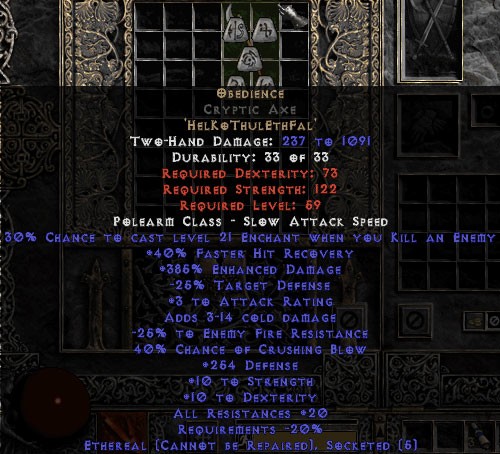 Obedience Cryptic Axe - Ethereal - 300 Def & 20-29 Res