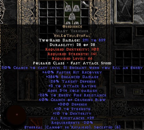 Obedience Giant Thresher - Ethereal - 300 Def & 30 Res - Perfect