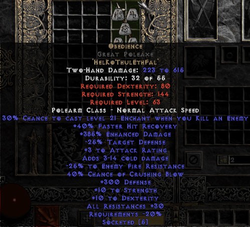 Obedience Great Poleaxe - 200-299 Defense & 20-29 Resist All
