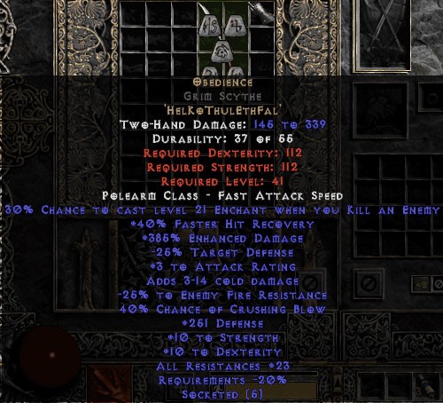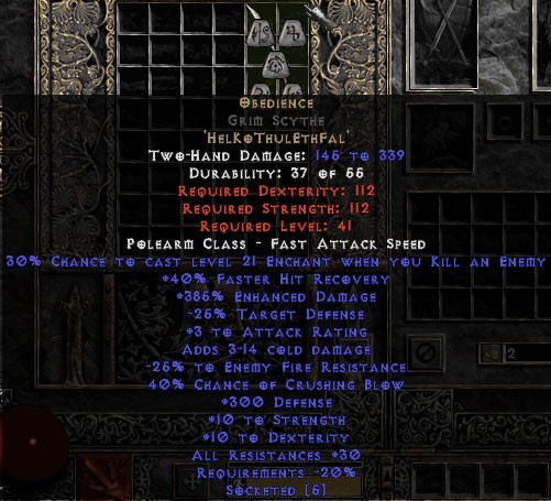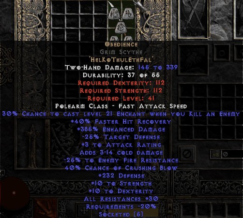 Obedience Grim Scythe - 300 Def & 20-29 Res