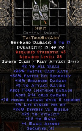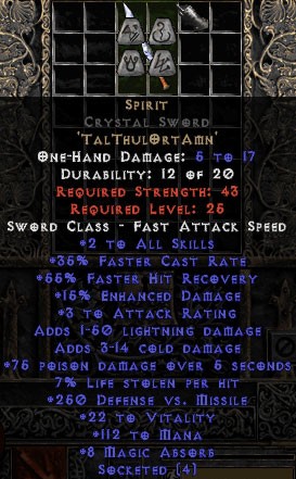Spirit Crystal Sword - 35% FCR/112 Mana/8 MA - PerfectLieferzeit: 1-12 Stunden |
