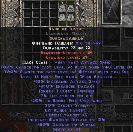 Hand of Justice Legendary Mallet - 345% ED - Perfect