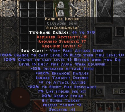 Hand of Justice Crusader Bow - Perfect 345% ED