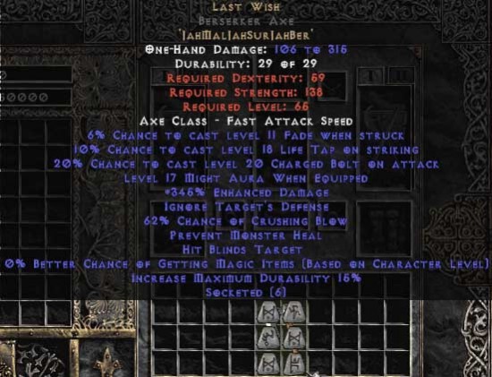 Last Wish Berserker Axe - 390% ED & 60-64% CB |