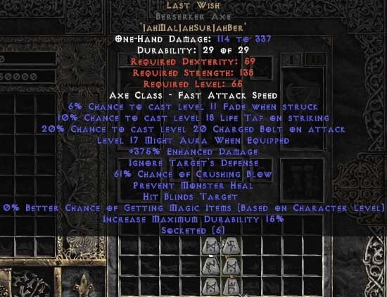 Last Wish Berserker Axe - 390% ED & 70% CB - Perfect |