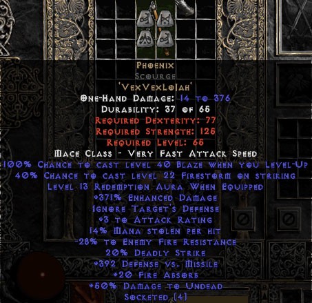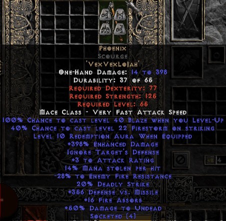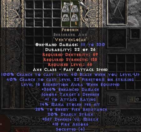 Phoenix Berserker Axe - 415% ED/400 DvM/21 FA/15 Red - Perfect
