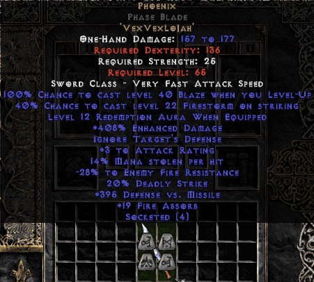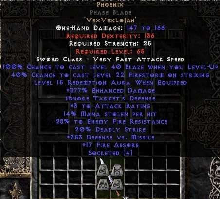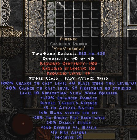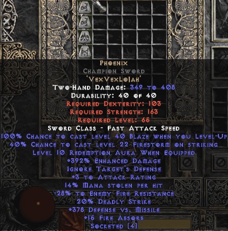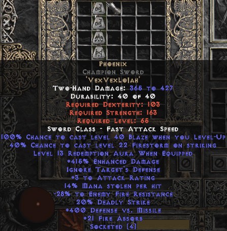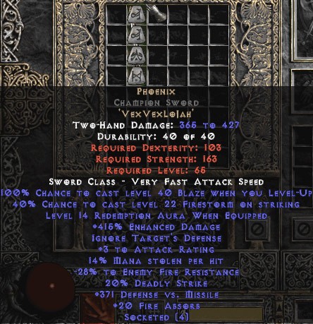 Phoenix Champion Sword - 415% ED/400 DvM/21 FA/15 Red - Perfect