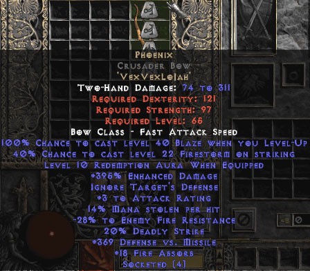Phoenix Crusader Bow - 415% ED/400 DvM/15-20 FA/10-15 Red