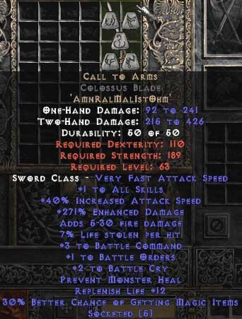 Call to Arms Colossus Blade - +6 BO/+6 BC/+4 BCry/305% ED - Perfect |