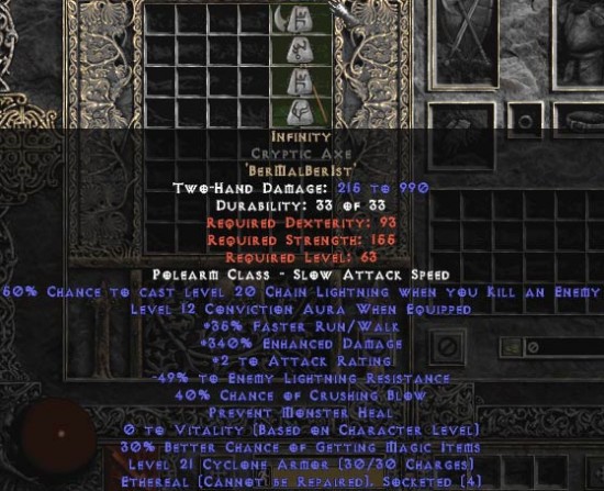 Infinity Cryptic Axe - Ethereal - 340% ED & -55% ELR - Perfect