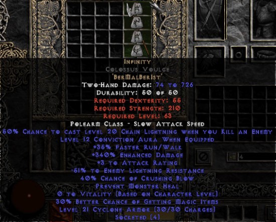 Infinity Colossus Voulge - 340% ED & -55% ELR - Perfect