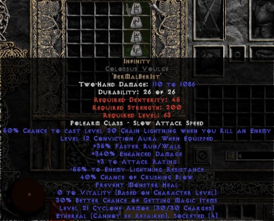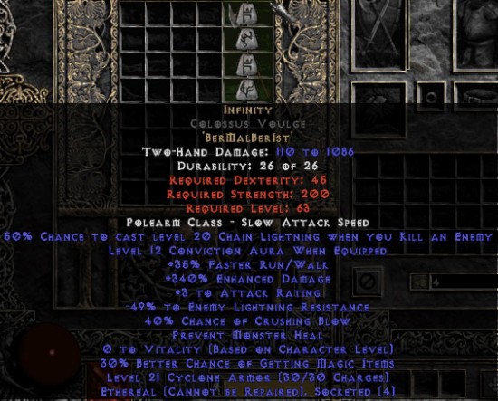 Infinity Colossus Voulge - Ethereal - 340% ED & -55% ELR - Perfect