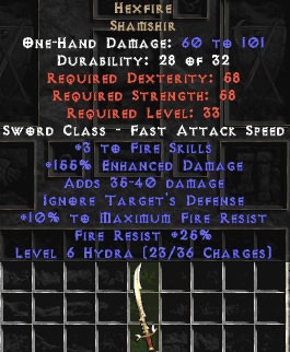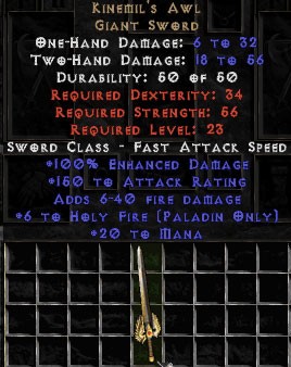 Kinemil's Awl - +100% ED, +150 AR, 6-40 Fire Dmg - Perfect |
