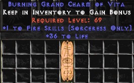 9 x Pack - Sorceress Fire Skills w/ 10-20 Life GC