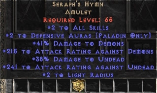 Buy Diablo II Seraph's Hymn +2 Def Auras