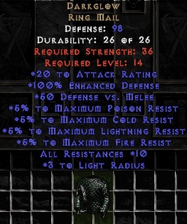 Diablo 2 Darkglow - 98 Def, +100% ED - Perfect kaufen