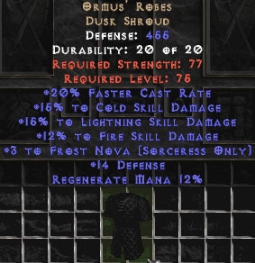 Ormus' Robes +15% to lightning and cold skills