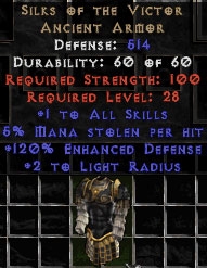 Buy Diablo II Silks of the Victor - 514 Def, +120% ED - Perfect