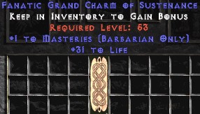 Buy Diablo II Barbarian Combat Masteries w/ 31-35 Life GC
