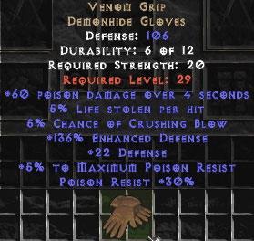 Buy Diablo II Venom Grip +130-159% Def % 15-25 Def