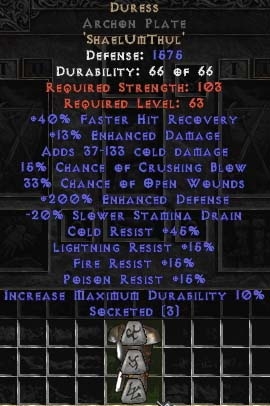 Buy Diablo II Duress Archon Plate - 200-214% EDef