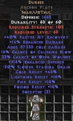 Buy Diablo II Duress Archon Plate - 215% Edef - Perfect