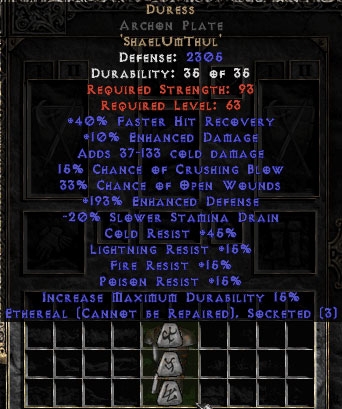 Buy Diablo II Duress Archon Plate - Ethereal - 165-199% ED