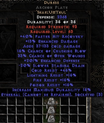 Buy Diablo II Duress Archon Plate - Ethereal - 200-214% ED
