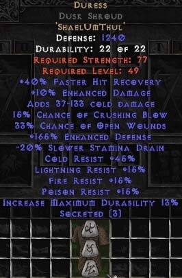 Buy Diablo II Duress Dusk Shroud - 165-199% EDef