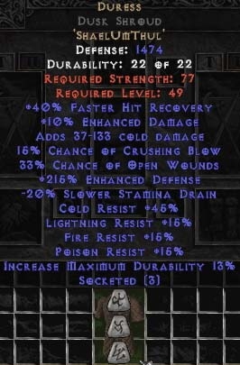 Buy Diablo II Duress Dusk Shroud - 215% Edef