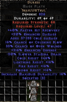 Buy Diablo II Duress Mage Plate - 215% EDef & 20% EDmg - Perfect