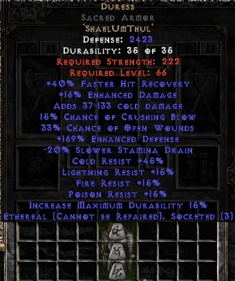 Buy Diablo II Duress Sacred Armor - Ethereal - 165-199% ED