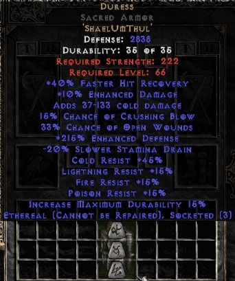 Buy Diablo II Duress Sacred Armor - Ethereal - 215% ED
