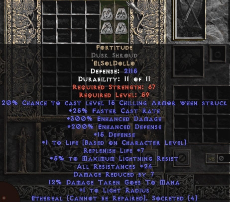 Buy Diablo II Fortitude Dusk Shroud - Eth Bugged - 25-29 Res & 1.5 Life