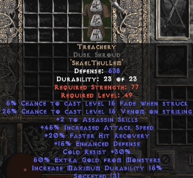 Buy Diablo II Treachery Dusk Shroud 15%ed