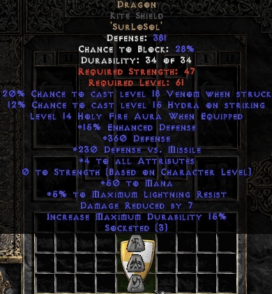 Diablo 2 Dragon Kite Shield 15%ed - 3-4 All Stats kaufen