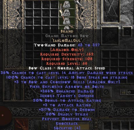 Diablo 2 Brand Grand Matron Bow - 3 B&C - 355% ED & 330% DD - Perfect kaufen