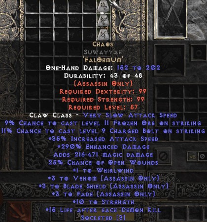 Diablo 2 Chaos Suwayyah - 3 BS/3 Venom/3 Fade - 290-319% ED kaufen