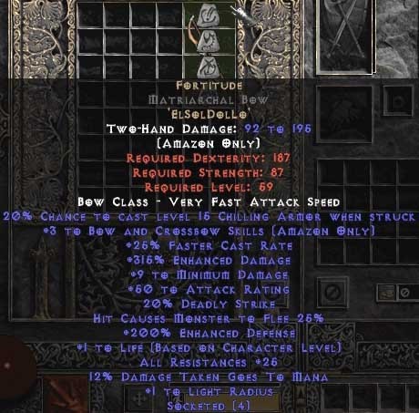 Diablo 2 Fortitude Matriarchal Bow - 3 B&C - 25-29 Res & 1-1.375 Life kaufen