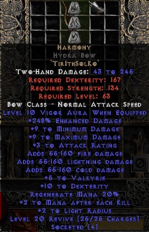 Diablo 2 Harmony Hydra Bow - 215-259% ED & 2-5 Valk kaufen