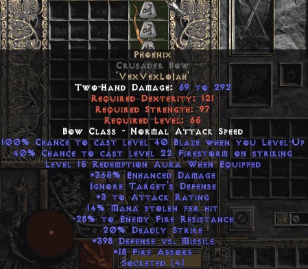 Diablo 2 Phoenix Crusader Bow - 365-394% ED/350-400 DvM/15-21 FA/10-15 Red kaufen
