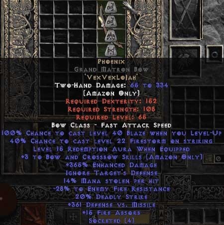 Diablo 2 Phoenix Grand Matron Bow - 3 B&C - 365-394% ED/350-400 DvM/15-21 FA/10-15 Red kaufen